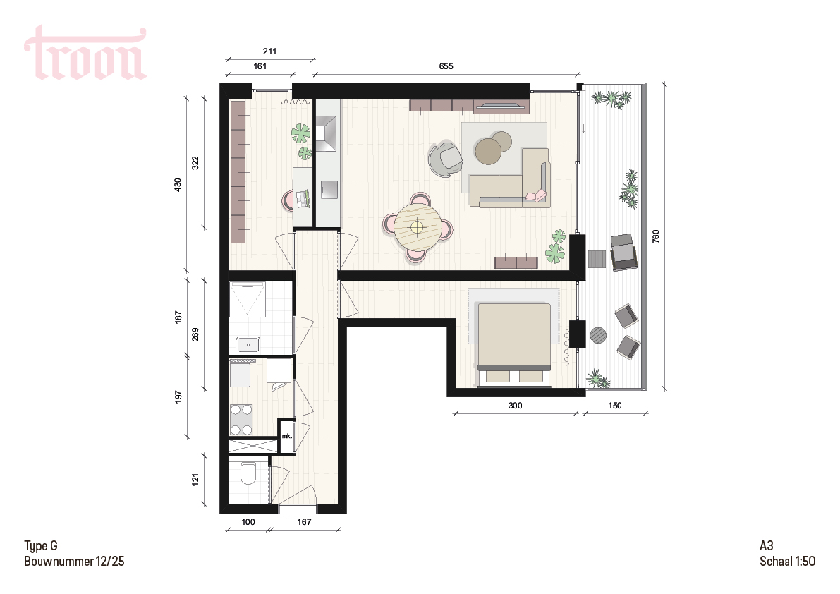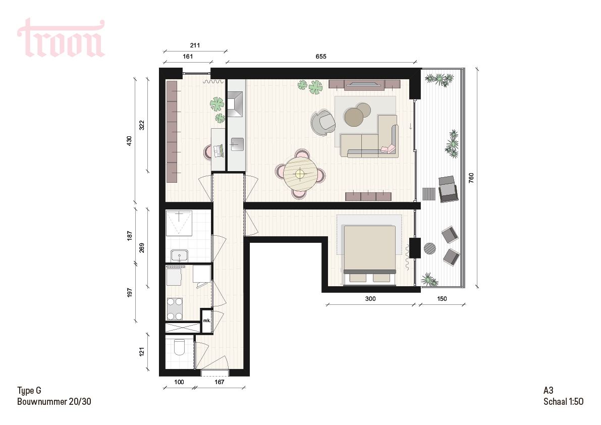 Deze prachtige 3-kamer hoekappartementen zijn circa 64 m2 groot en liggen op de eerste, tweede, derde of vierde verdieping. Alle woningen in Troon beschikken over een badkamer en separaat toilet. Voor uw keuken hebben wij Bruynzeel Keukens geselecteerd als partner. Zij heeft speciaal voor Troon een keukenvoorstel gemaakt, die is opgenomen in de keukenbrochure, onder het kopje ‘downloads’.